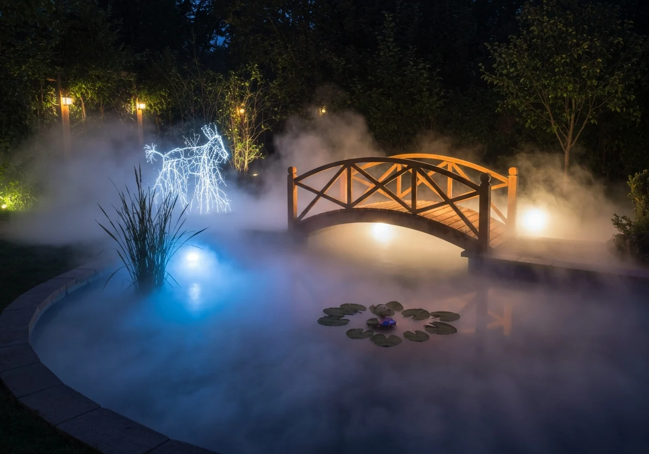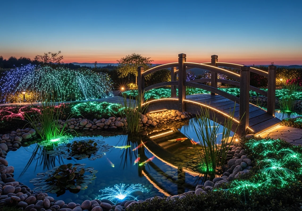 Волоконно-оптическая подсветка подходит для любых водоемов, независимо от размера и формы. Она обеспечивает естественный эффект игры света на воде, создавая иллюзию природного явления. Особенностью этого метода является полное отсутствие электрических соединений вблизи воды, что повышает безопасность пользователей.